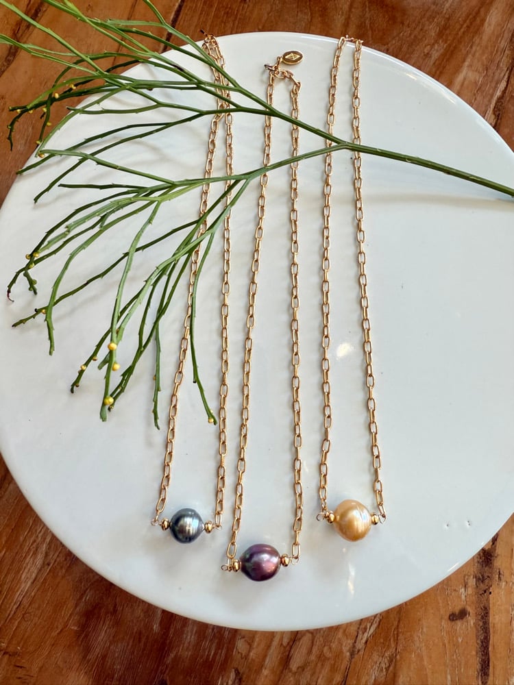 Precious pearl on large gold filled linked chain with gold filled nugget bead